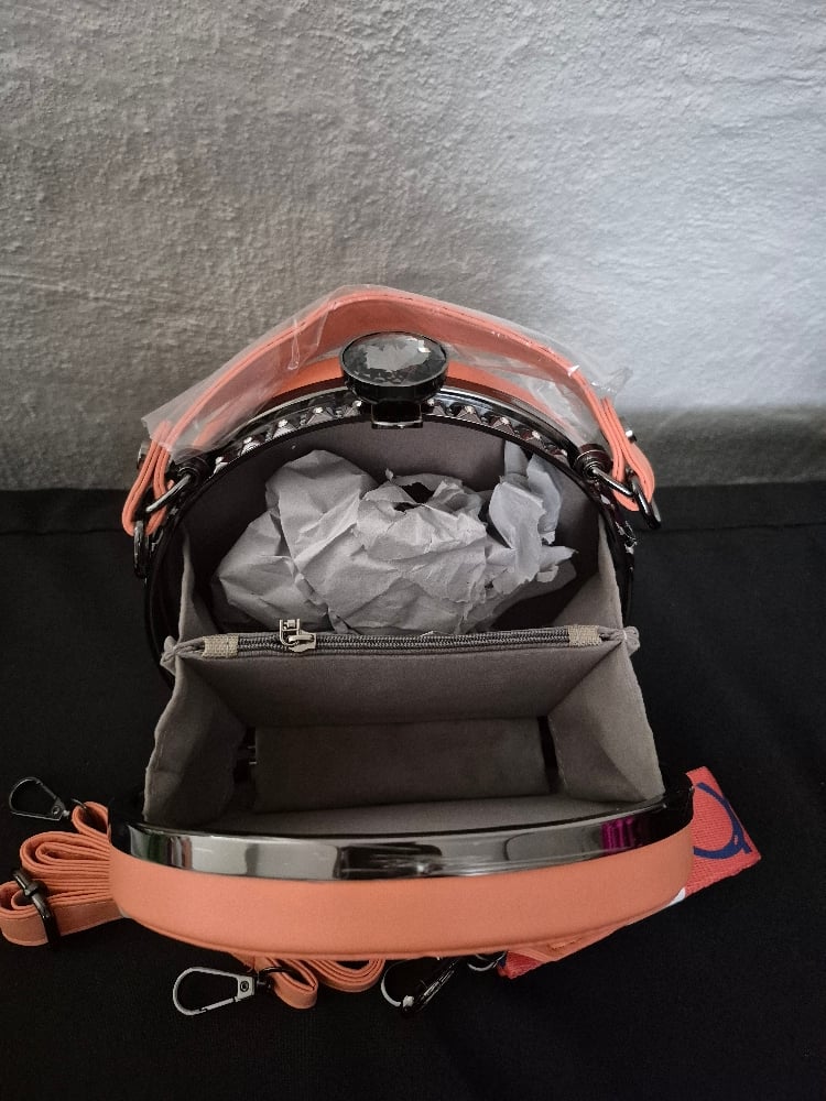 The Peach Crossbody Purse is a stylish and versatile accessory for women on the go. With a charming design featuring a jewel closure, this small round purse comes in a vibrant peach color with gold hardware accents. The purse includes 2 straps, a detachable crossbody strap for convenience, and a fabric lining for a luxurious feel. Perfect for crossbody use, this purse exudes a trendy and fashionable style that is both practical and chic. Made from faux leather, this purse is a must-have for any fashion-forward woman.